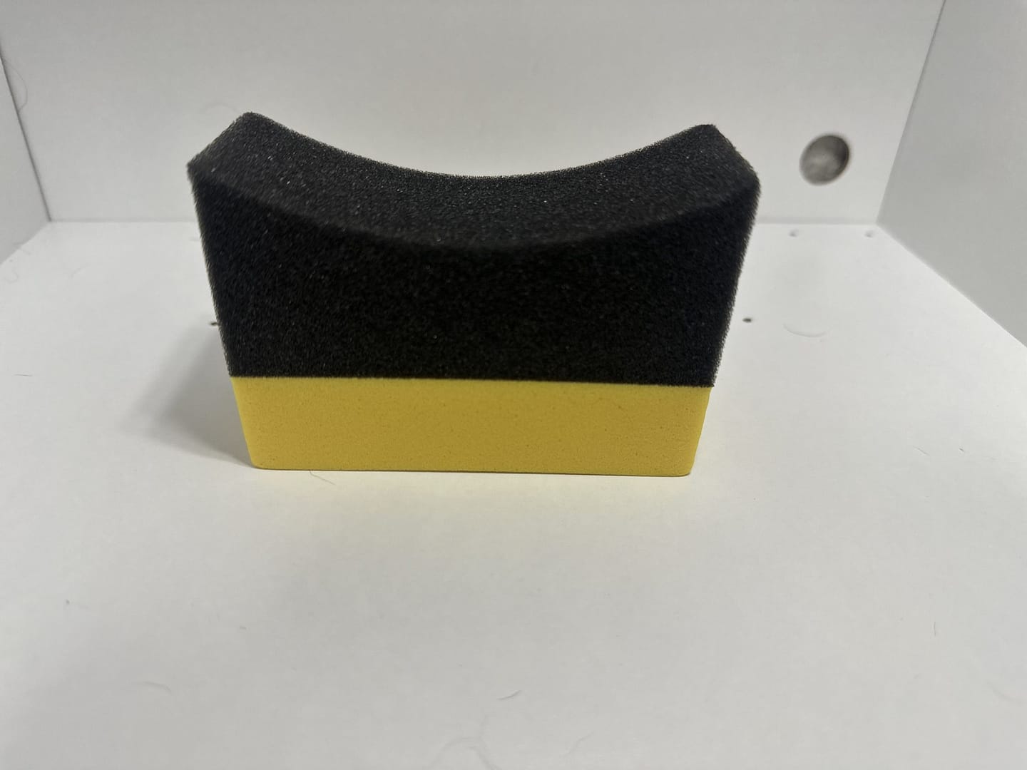 Aplicador amarillo y negro, ideal para aplicar ceras y pulimentos de forma uniforme.