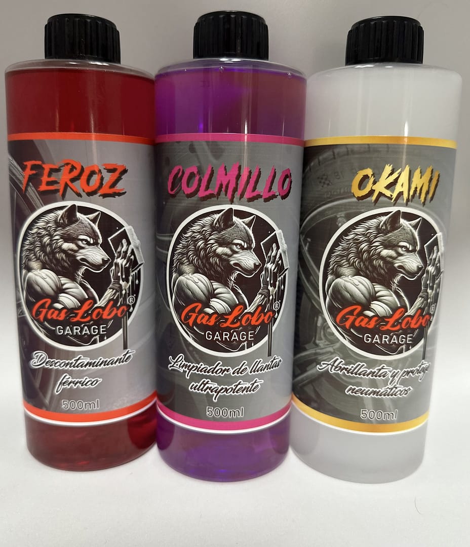 - Okami: un abrillantador e hidratador de neumáticos que protege y revitaliza las superficies de goma, proporcionando un acabado brillante y duradero.